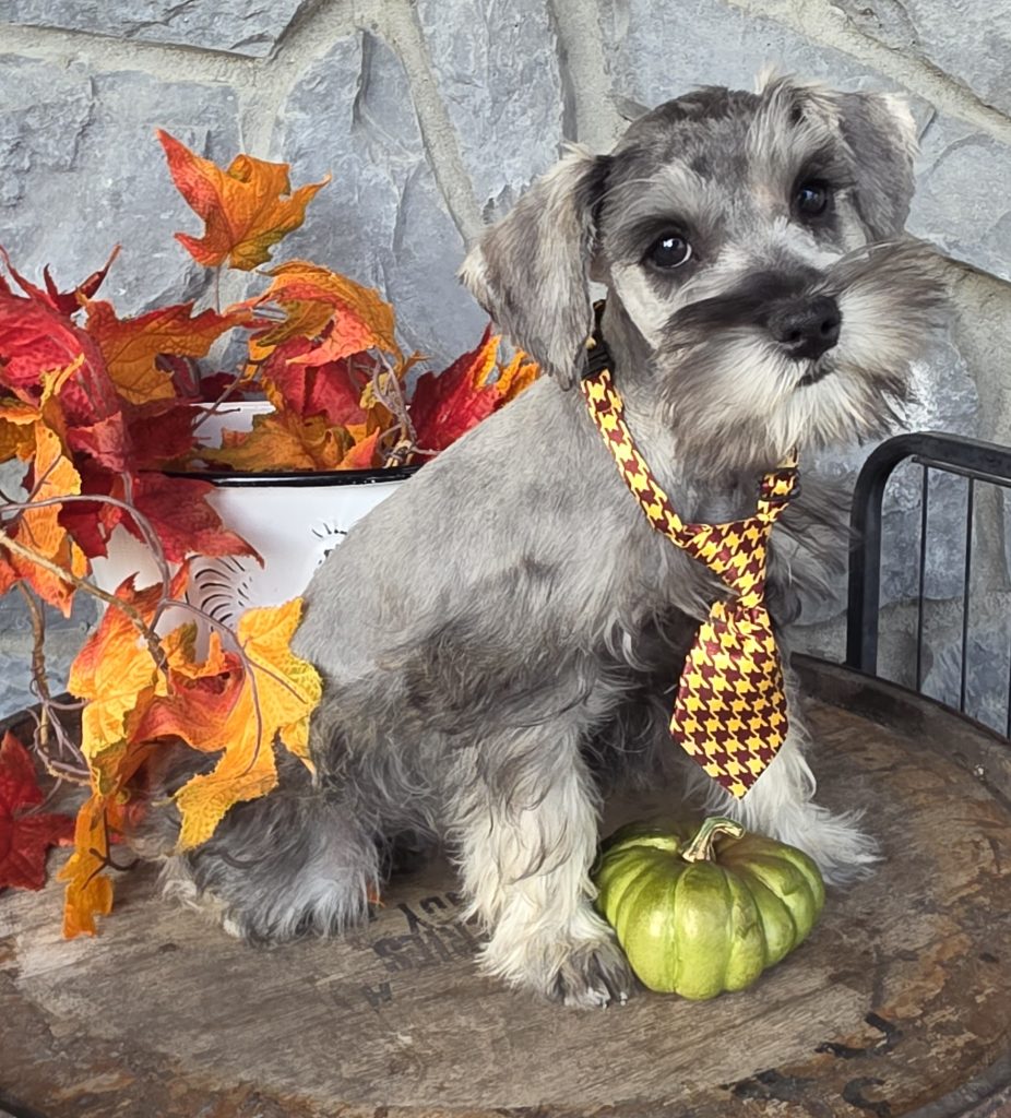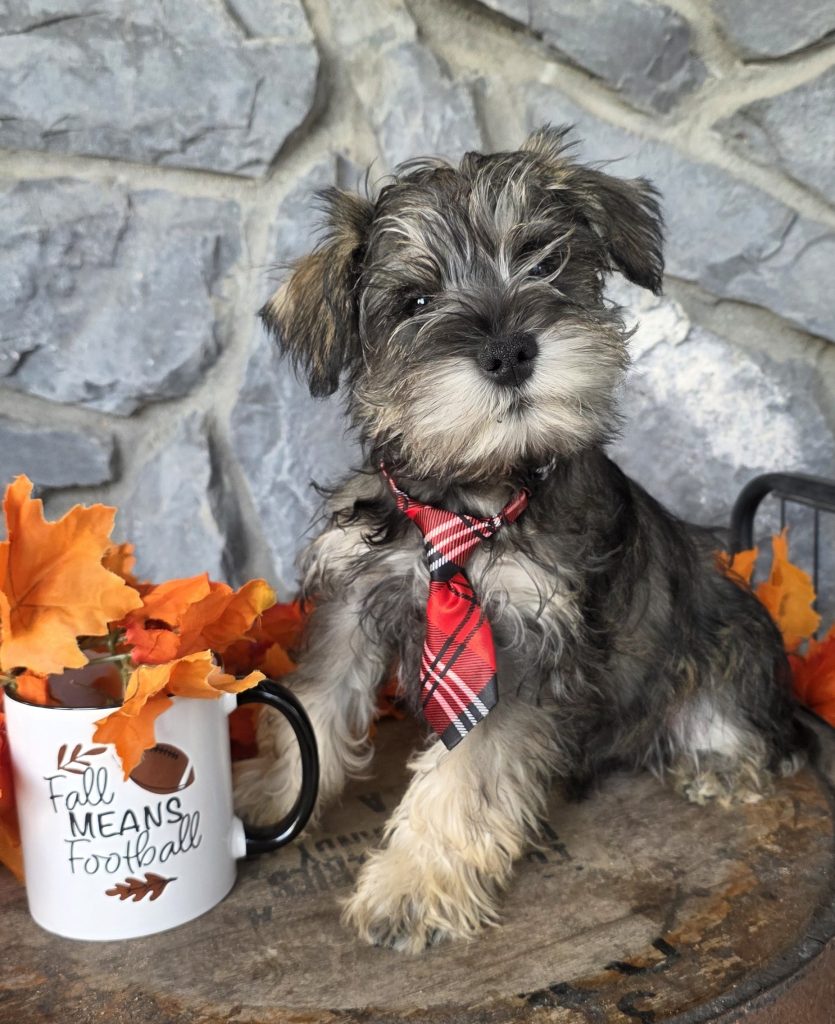 Sweet spunky Min schnauzers! Born 7 26 25. 3 boys and 1 girl. Posted on October 15, 2025October 28, 2025 by Debbie in Puppies for Sale Sprinkles, spoken for Acorn Brownie Diago Diego Brownie Acorn