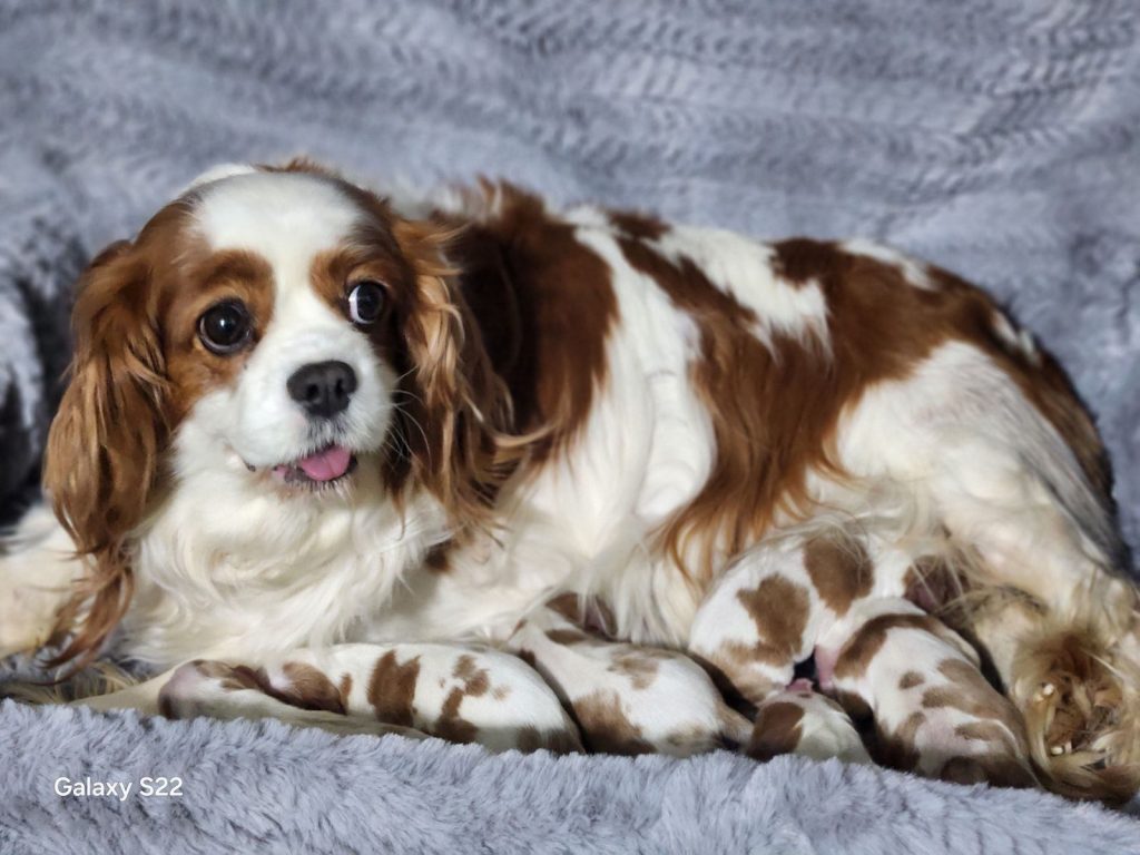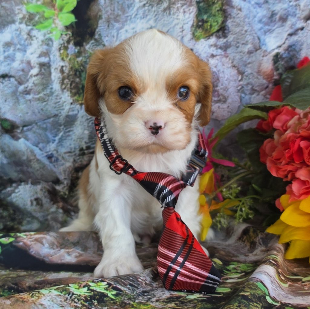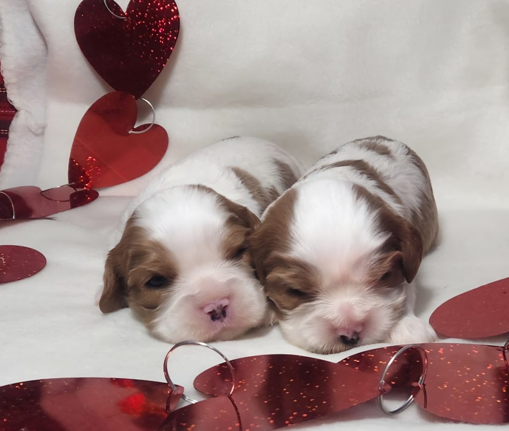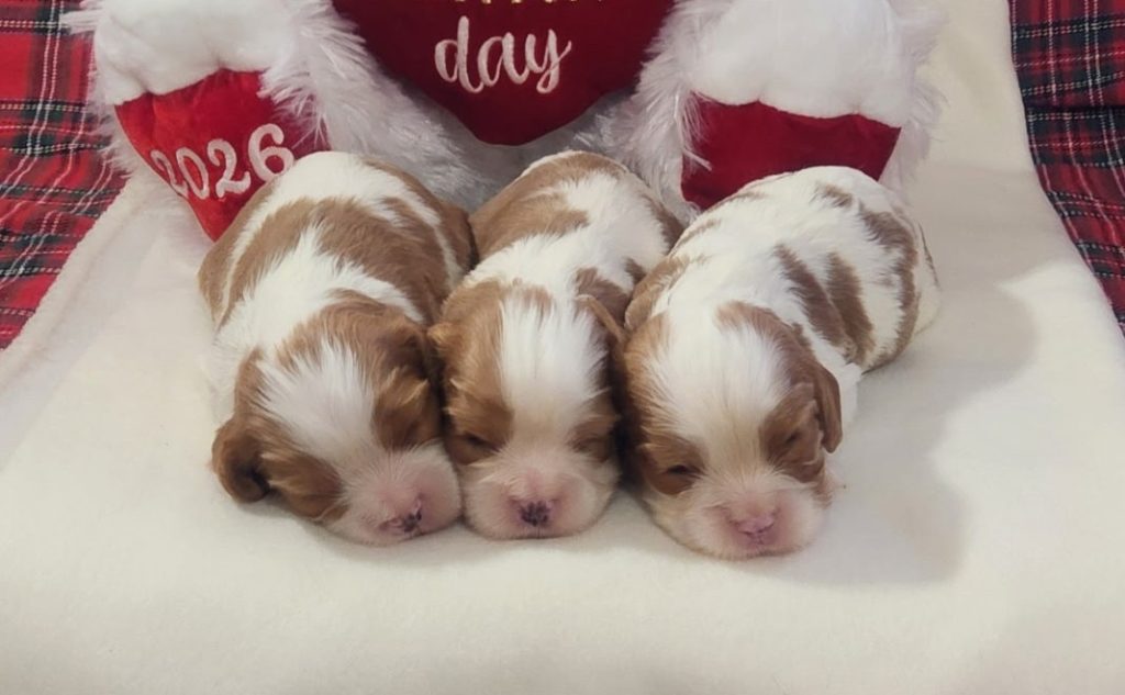 Gorgeous blen cavalier litter! 1-24-26 2 girls, 3 boys! 2 boys available! Posted on March 3, 2026 by Debbie in Gallery, Puppies for Sale Spoken for One spoken for